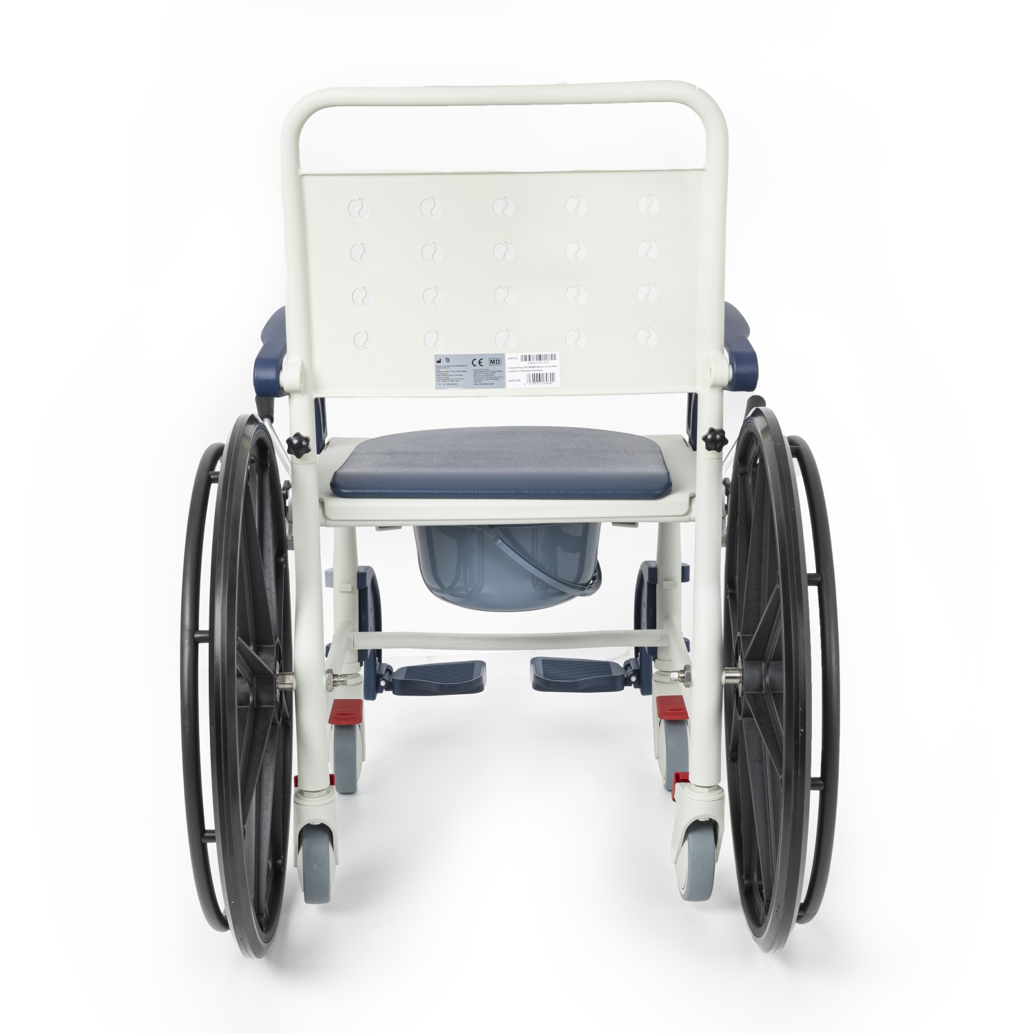 Bu model, arka kısmında bulunan büyük çaplı tahrik tekerlekleri sayesinde kullanıcının kendi başına hareket edebilmesini sağlar. Ancak ihtiyaç durumunda, arka tekerlekler kolayca çıkartılarak sandalye, dört küçük tekerlek üzerinde refakatçi kontrollü bir banyo-tuvalet sandalyesi olarak da kullanılabilir. Bu pratik özellik, ürünü hem ev tipi kullanımda hem de profesyonel bakım ortamlarında ideal kılar.