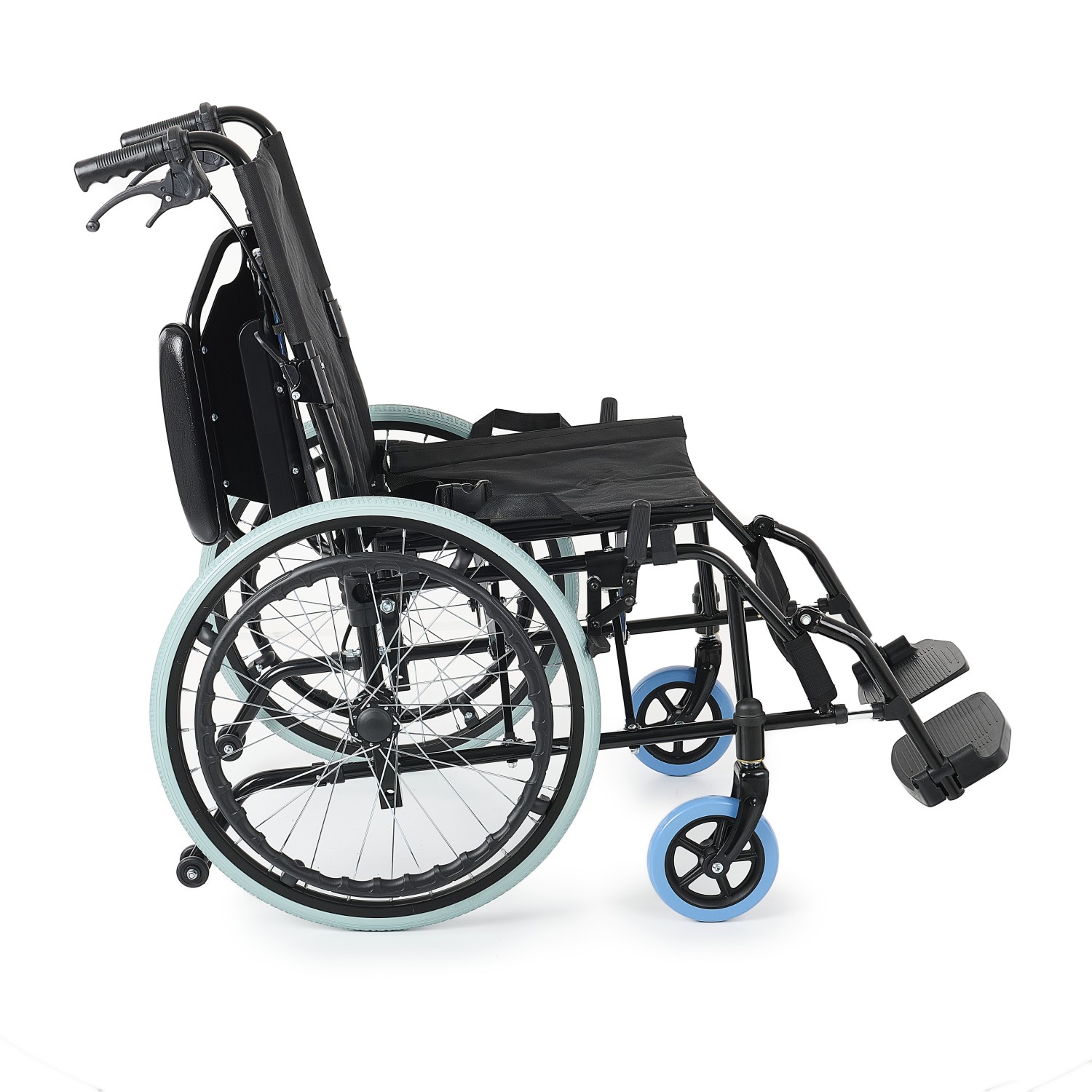 Yan kolları açılır, sırtı kırılır, refakatçı frenli(mandallı fren sistemi), emniyet kemerli