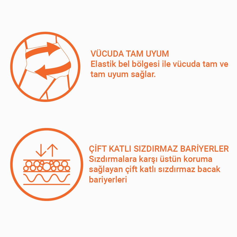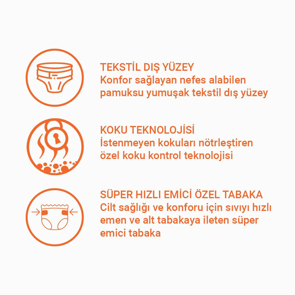 İdeal koruma ve kuruluk seviyesi için benzersiz çift katlı emici bölge.