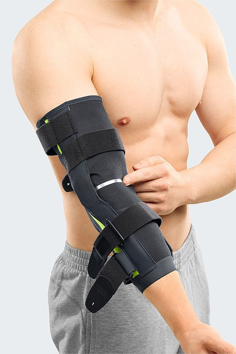 medi Epico active, hastanın aktiviteye dönüşünü destekler. Yumuşak dirsek ortezi zararlı varus ve valgus kuvvetlerine karşı koruma sağlar. Aynı zamanda, bireysel fleksiyon ve ekstansiyon limitleri, iyileşme sürecini desteklemek için tedaviye uygun mobilizasyonu mümkün kılar. Dirsek ekleminin eşzamanlı stabilizasyonu, hareketle ilişkili ağrıyı da hafifletebilir.