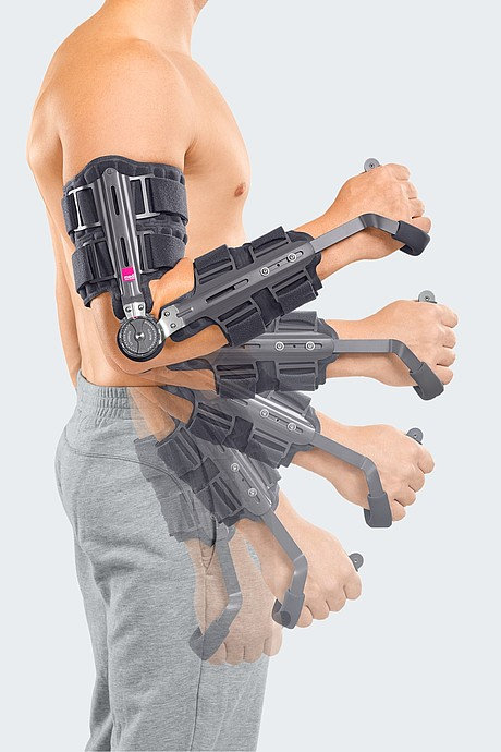 medi Epico ROM®s, proksimal radius-ulnar eklemi hareketsiz hale getirirken dirseğin kademeli mobilizasyonu için bir dirsek ortezidir . Fleksiyon ve uzama limitleri, tam uzamadan (0 °) güçlü açılı bir konuma (120 °) kadar 10'luk adımlarla ayarlanabilir. Bu şekilde ortezin hareket aralığı ilgili terapi durumuna uyarlanabilir.