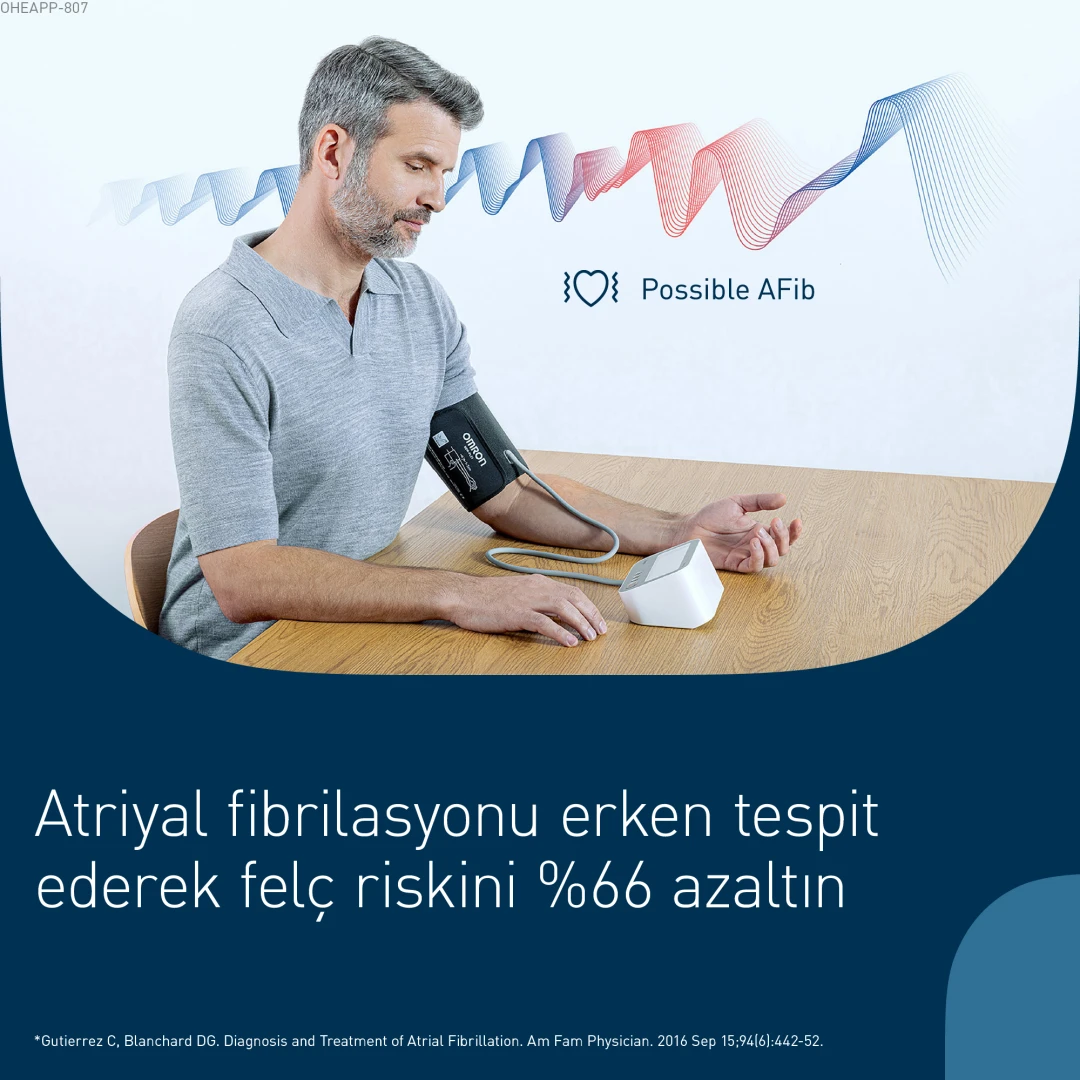 OMRON M4 Connect AFib, evde tansiyon takibini daha kolay ve güvenilir hale getirmek için tasarlanmıştır. Klinik düzeyde doğruluk sunar ve kullanımı oldukça pratiktir.